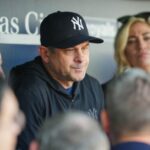 Oct 1, 2023; Kansas City, Missouri, USA; New York Yankees manager Aaron Boone (17) talks with reporters prior to a game against the Kansas City Royals at Kauffman Stadium. Mandatory Credit: Jay Biggerstaff-USA TODAY Sports New York Yankees manager Aaron Boone thinks he has a roster that is ready to compete, while down in the farm, four prospects made a prestigious … [Read more...] about Yankees News & Buzz: Aaron Boone talks roster; 4 Yankees make MLB Pipeline’s top 100 prospects list, more