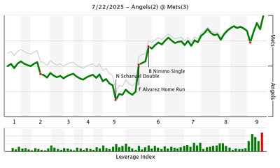 The Baby Mets had to be the heroes since the top of the lineup continues to struggle. Francisco Lindor is now 0-for-his-last-30 and Lindor, Soto, and Alonso combined to go 0-for-9. After the Angels made two defensive miscues in the seventh, Nimmo, Lindor, and Alonso all struck out to leave the runners stranded.