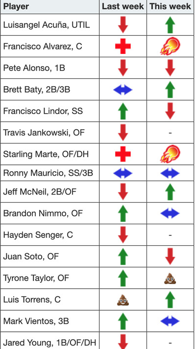 The troubles at the top of the lineup are still real, with Brandon Nimmo being the only one of the top four to really hit all week. Pete Alonso had a big home run in the finale against the Angels, but otherwise has been cold as ice. Francisco Lindor broke his hitless streak against the Angels too, and is starting to look a little more like himself after a dinger in San Francisco. The opposite-field home run by Juan Soto was his saving grace this meter period, as he had looked more like his early season lunger than the hottest hitter in the world in June.