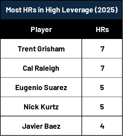 This is the aspect of his 2025 season I’m most confident he will not repeat; I do not believe Grisham has a magic trait that allows him to perform better in big moments and instead think it was very fortunate sequencing.