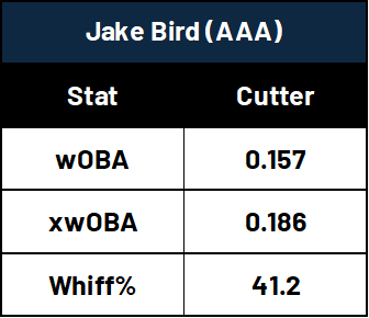 This pitch performed well in Scranton, he seemed to be able to attack the zone with it regularly which is a good sign given how shotty Bird’s strike-throwing abilities can be.