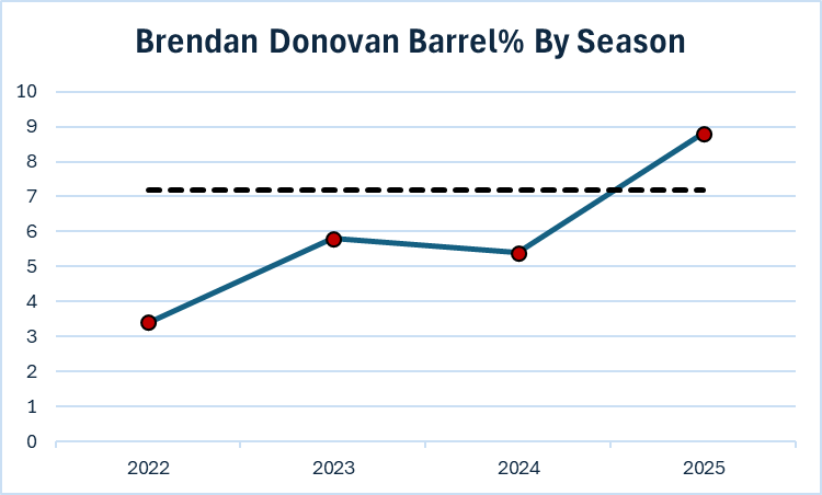 Brendan Donovan’s Barrel% has climbed from firmly below-average to above-average in the past year, and the Yankees could help him unlock more by increasing his league-average Pull AIR% numbers.