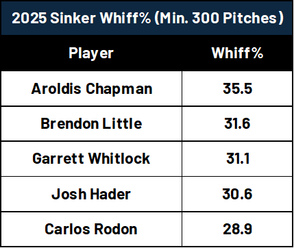 Eno Sarris & Max Bay’s Stuff+ model (which is available on FanGraphs) graded him out at a 103 in 2025, which is better than the league-average mark of 98 for starting pitchers.