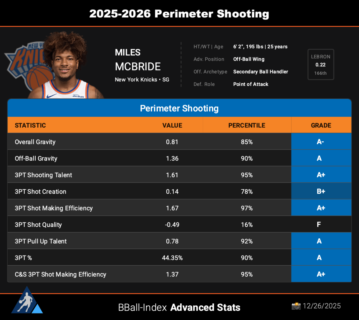 According to Basketball Index, McBride ranks among the best outside shooters in the league, a statement that would seem unimaginable a few seasons ago.