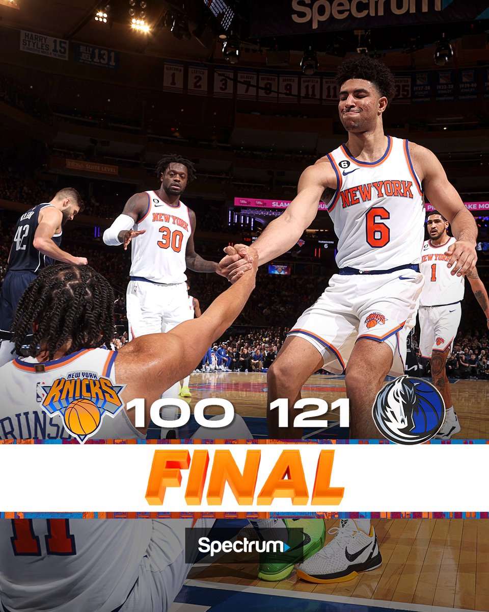 It’s a final: #Mavs 121, Knicks 100. Luka had 30-8-7 and 3 blocks, Tim scored 28 pts, Spencer scored 17 pts, Maxi had 13 pts, and Reggie scored 10 pts. The Mavs are 11-11 and will host Phoenix on Monday. – 2:44 PM