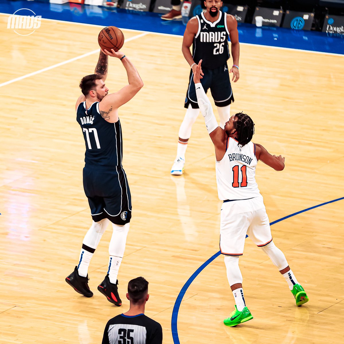 So strange. For the opening tip, Luka is standing at the free throw line at one end and Brunson is standing at the free throw line at the other end. – 12:43 PM