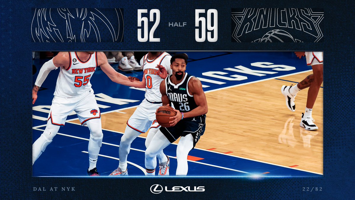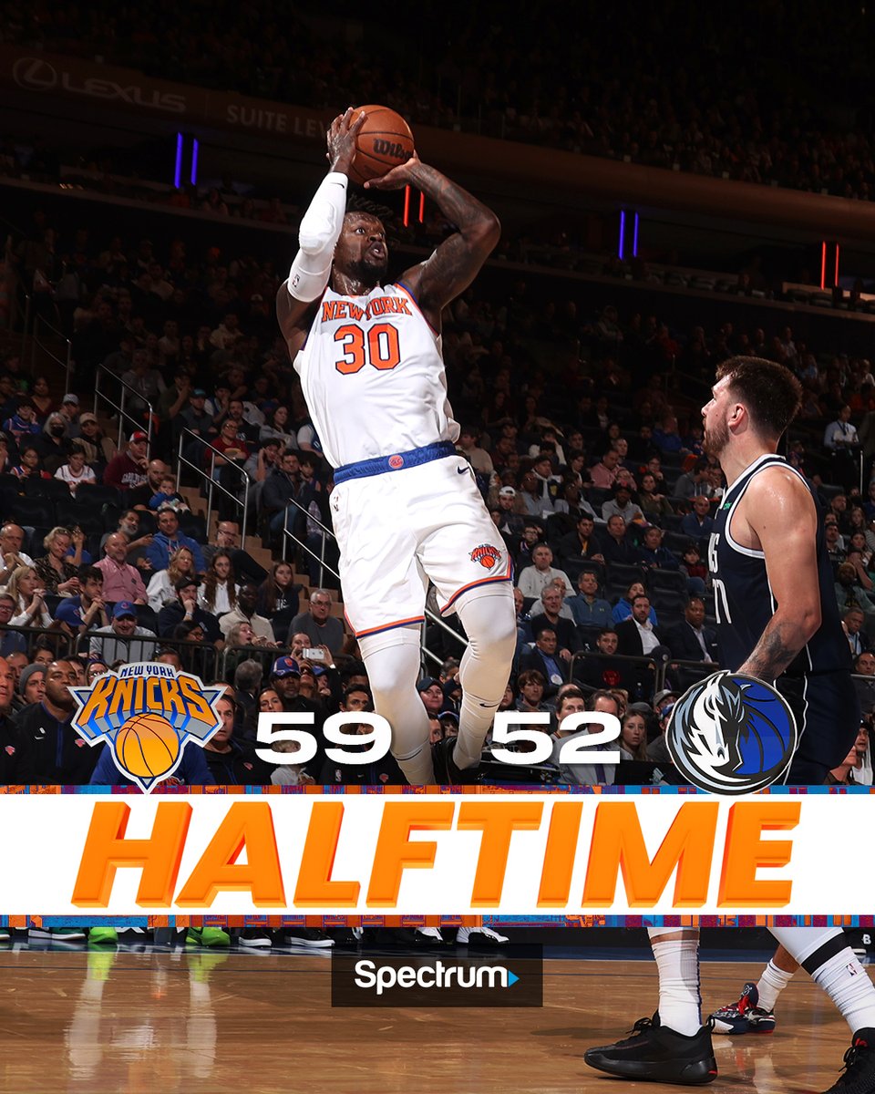 Knicks lead the Mavericks at halftime, 59-52.