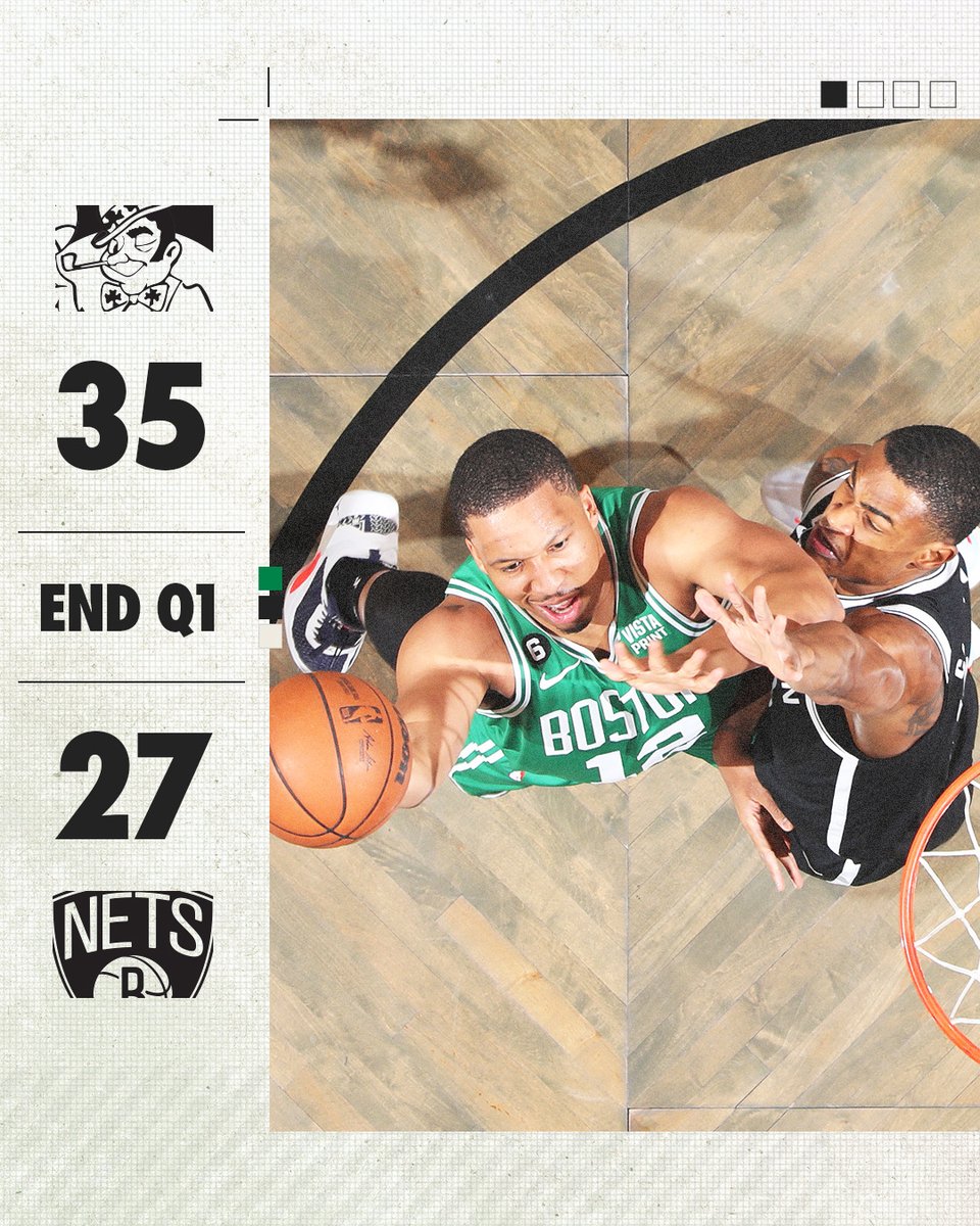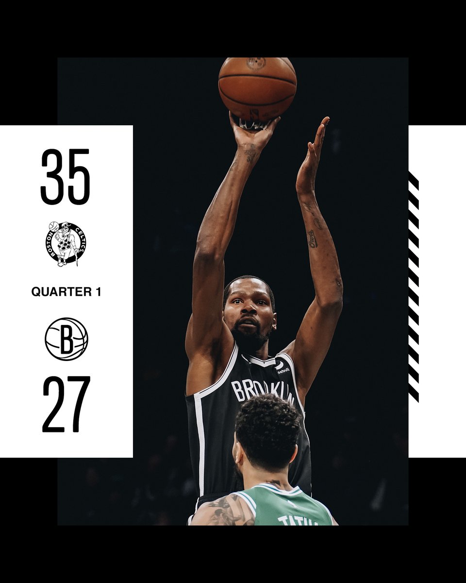 Some incredible transition defense from the #Celtics here, and a bit of fortune with Claxton dropping a 2-on-1 pass, get them ahead after the #Nets hit 5 straight shots to start the game. Big blocks by White & Brown at the rim chasing down Kyrie and Harris. 16-11 Boston. – 6:17 PM