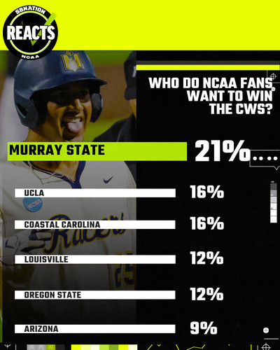 Speaking of baseball, it is College World Series time and we do enjoy that the SB Nation National survey shows that fans still want Cinderella to win. Go Racers!