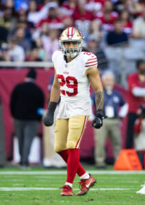 Greenlaw logged all of 34 defensive snaps last season, needing until December to be activated from the reserve/PUP list. He also missed 13 games in 2021 due to a recurring groin injury that required surgery. That injury opened the door for Azeez Al-Shaair to receive extended run alongside Fred Warner, allowing an extended audition that set up the UDFA’s eight-figure-per-year Texans deal down the road. Greenlaw is a better player, but circumstances have clouded his market.