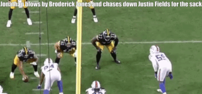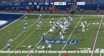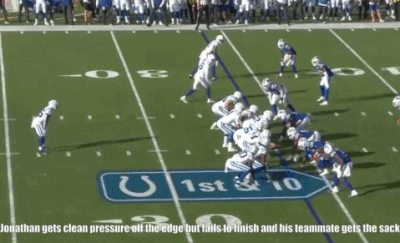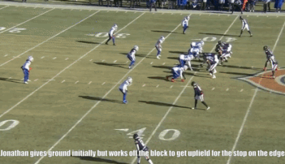 Missed tackles haven’t been a major issue for Jonathan, who never missed more than five in a college season. However, he did miss an opportunity to complete a sack on a few occasions.