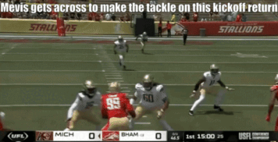 Encouragingly, he did have a special teams tackle during the UFL season and then added another in the playoffs. The first of these saw the return man essentially running right into him as he broke down in space.