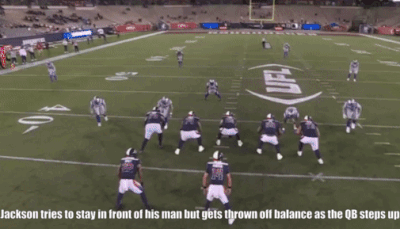 During his career, Jackson has allowed a low pressure rate. However, he did give up 12 sacks in his last four college seasons and four in his 10 UFL games. He did not give up a sack in three preseason games.