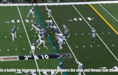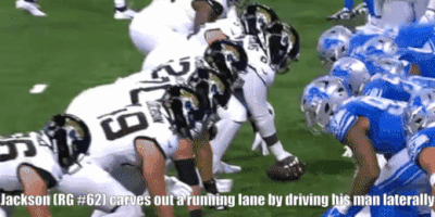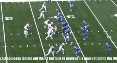 Jackson’s run blocking grades on analysis sites such as Pro Football Focus have been unspectacular, usually hovering around average. However, he looks good in certain situations so there may be a foundation to build on.