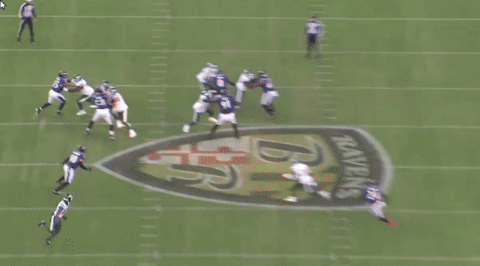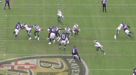 Here’s a terrific block to drive back and seal off the edge defender to create a big running lane.